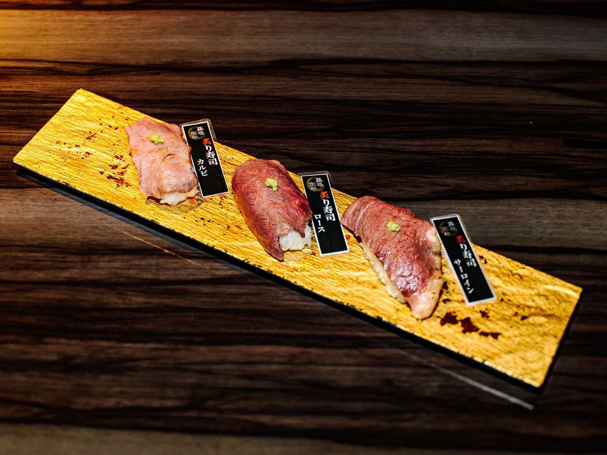 どのお肉を注文しようか迷った際には、「牛極3点盛り」。カルビを中心に、3種類のお肉をご用意しています。お二人でシェアや食べ比べてしていただきたいメニューとなっております。こちらもさっぱりとワサビか、当店自慢のタレでお召し上がりください。